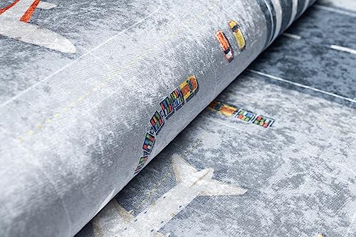 TAPISO Emma Tappeto Gioco Bambini Antiscivolo Lavabile in Lavatrice Design Stampato Morbido Motivo Strada Città Grigio Nero Colorato Sala Giochi Cameretta Stanza Bambini 140 x 200 cm