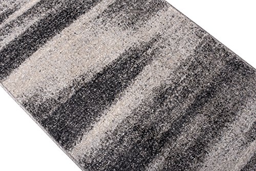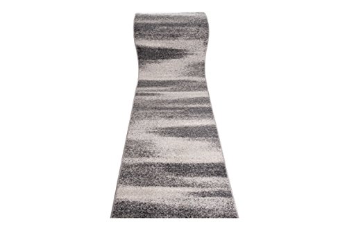 TAPISO Sari Tappeto Passatoia Cucina Corridoio Ufficio Entrata Casa Cucina da Ingresso Scuro Grigio Onde Astratto A Pelo Corto 90 x 380 cm