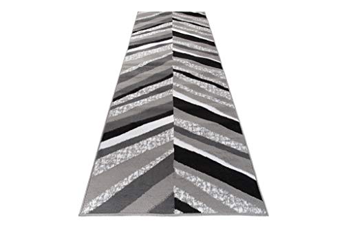 TAPISO Maya Tappeto Passatoia al Metro Tappeto Runner Corridoio Cucina Grigio Nero Moderno Astratto A Pelo Corto 80 x 240 cm