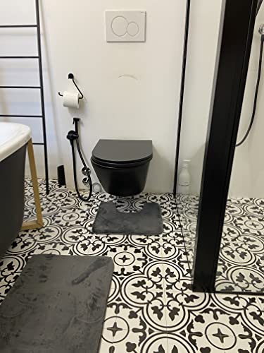 Il set è composto da 3 pezzi, di cui 1 rettangolare 45x75 cm, e 2 a forma di U 45X40 cm da mettere sotto il lavandino e dei sanitari. Dunque, ogni elemento che compone il set ha una sua specifica funzione. Disponibile in 6 varianti di colore interamente in tinta unita tra cui scegliere in base al proprio arredo e gusto.
