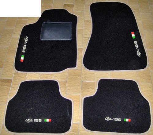 Tappeti per Auto Neri con Bordo Beige, Set Completo di Tappetini in Moquette su Misura con Ricamo a Filo Bandiera Italiana