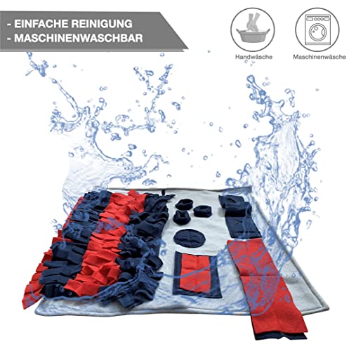 Mangime = allenamento: questo tappeto di ricerca imita la ricerca di cibo su erba e campi. Nascondi i dolcetti o i piccoli giocattoli nel tappeto e inviali al tuo cane a cercare le tracce. Aiuta ad allenare il senso dell'olfatto e l'intelligenza del cane.