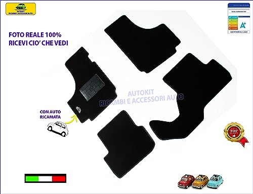 Tappetini per FIAT 500 Cinquecento D'EPOCA F - L - R prodotte dal 1957 in poi SET 4 PZ. Tappeti auto in Moquette nera antiscivolo con auto ricamata - 131397