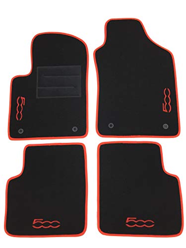 ASC Tappetini per 500 2007 2016 con Loghi e Bottoni Bordo Rosso (4 Loghi)