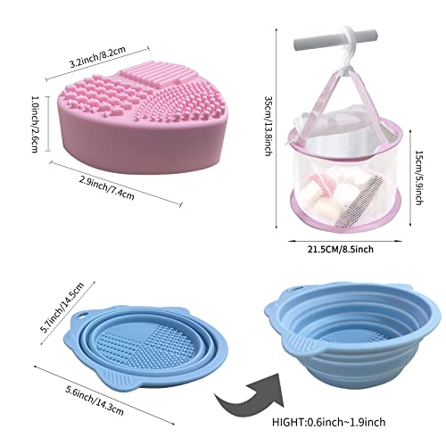 【Ciotola per la pulizia del trucco】 Ciotola dal design pieghevole con scrubber per la pulizia dei pennelli, usi multipli per la pulizia di pennelli da trucco, spugne, piumino da cipria.