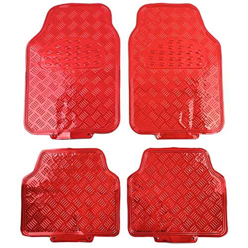 Tappetini per auto, universali, in alluminio, striati, cromato rosso