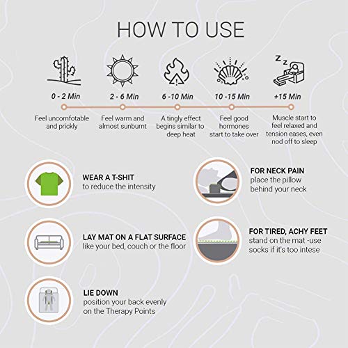 Rilassamento e massaggio: a differenza di altri tappetini per digitopressione, questo è progettato per trattare contemporaneamente il dolore alla parte superiore e inferiore della schiena e il cuscino per l'agopuntura offre un supporto confortevole e terapeutico per il collo e la testa. Migliaia di punti terapeutici confortevoli, posizionati strategicamente e privi di pungiglione, trasferiscono una leggera pressione sulle linee meridiane del corpo per stimolare il flusso sanguigno.