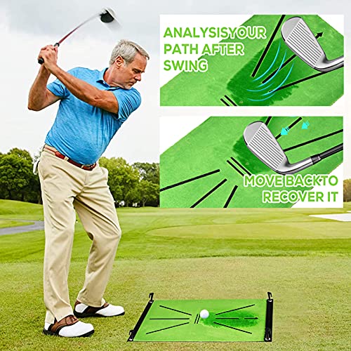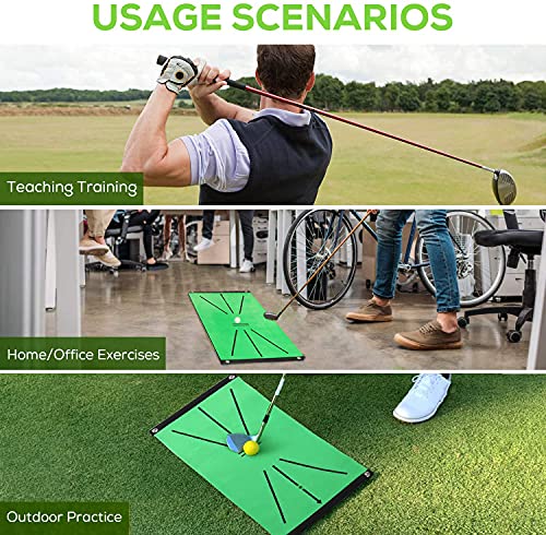 Accessorio portatile per l'allenamento di golf: il set di simulazione è dotato di un tappetino oscillante da 30 x 60 cm, quattro chiodi per il fondo per rafforzare il tappetino swing. Anche un ottimo regalo per un golfista, marito o figlio!