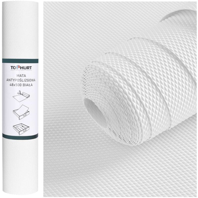 Tappetino antiscivolo per cassetti 48 x 500 cm bianco Dimensioni: 48 x 500 cm | Colore: bianco Se stai cercando un modo efficace per mantenere l'ordine nei tuoi cassetti, vale la pena considerare l'acquisto di un tappetino antiscivolo. Grazie alla sua texture efficace e agli elevati parametri tecnici, impedisce efficacemente lo spostamento degli oggetti nel cassetto. Inoltre, i tappetini antiscivolo sono protettivi e proteggono i cassetti da graffi e danni. Il tappetino antiscivolo è universale e si adatta a vari tipi di cassetti. Può essere facilmente tagliato in base alle proprie esigenze e tagliato in qualsiasi forma. È anche facile da pulire e il materiale di cui è composto è sicuro e inodore. Il tappetino antiscivolo è resistente all'umidità e attutisce i suoni rumorosi, rendendolo una soluzione ideale per i cassetti della cucina o del bagno. Il suo colore gradevole alla vista gli consente di abbinarsi a qualsiasi interno, il che rende il tappetino antiscivolo non solo