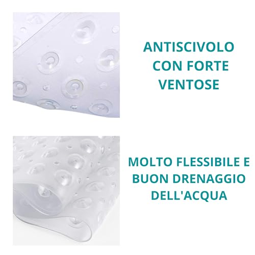 Tappetino Antiscivolo Doccia 57x36cm - Antiscivolo Doccia Resistente alla Muffa - Tappeto doccia con Forti Ventose - Tappetino Antiscivolo Trasparente Doccia