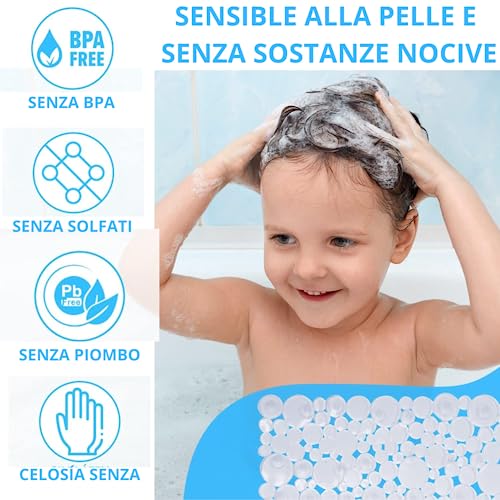 [IDEALE PER TUTTA LA FAMIGLIA] Le tappetino antiscivolo vasca da bagno sono ideali per tutti in casa, in particolare per bambini, donne in gravidanza, persone anziane e anche per gli animali. Il tappetino antiscivolo tiene una textura molto piacevole al tatto sui piedi ed è completamente antiscivolo.