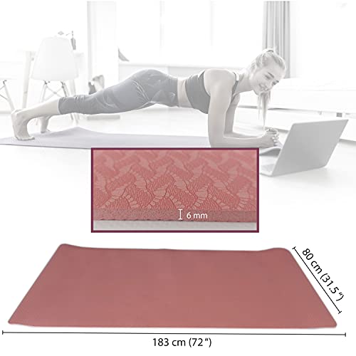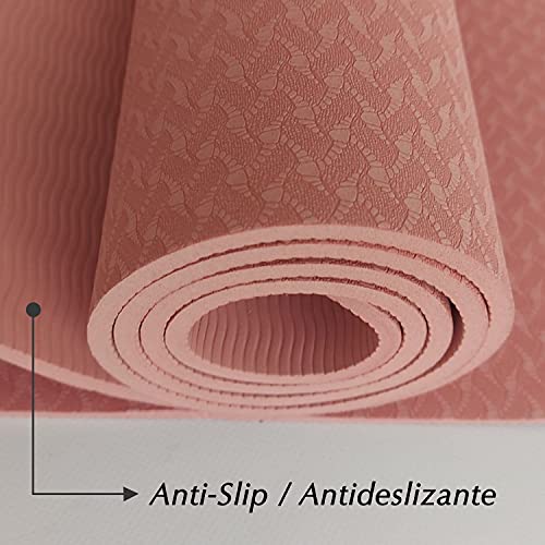 NAWA Home & Work - Tappetino Yoga Antiscivolo | Materiale Absorbente dal Sudore | Supporto Comodo per il Corpo | Design Allineato per Controllo Movimenti | Dimensioni 183cm x 80cm, Rosa, TPE
