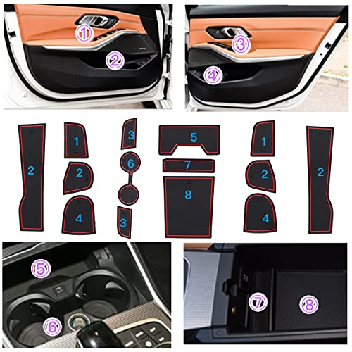 SXCY Tappetino Antiscivolo per BMW Serie 3 G20 2020, Tappetini in Gomma per Auto, Antiscivolo Mat per Console Centrale, Bracciolo, Scanalatura Porta, G20 Accessori (Rosso)