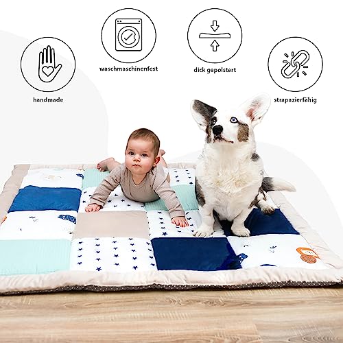 Ampia superficie di appoggio per un divertimento senza fine: le coperte per gattonare patchwork imbottite offrono ai tuoi bambini lo spazio perfetto per gattonare, giocare e scoprire.