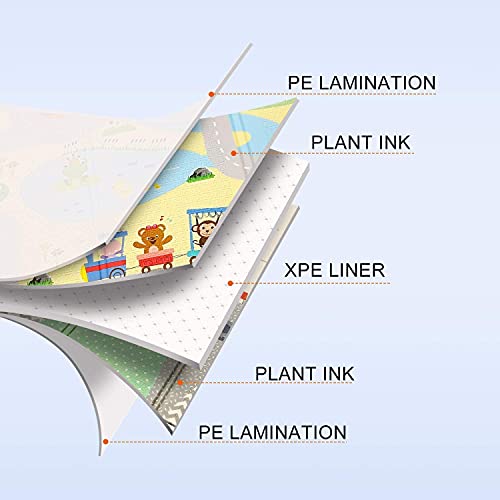 Tappetino da gioco per bambini extra grande e reversibile: il tappetino da gioco ha una dimensione di 180 x 200 x 1,5 cm. Questo grande tappetino da gioco è abbastanza grande per permettere al bambino di gattonare e giocare. Uno spessore di 0,6 pollici può garantire che il bambino non si ferisca in caso di caduta e protegge il bambino dai pavimenti freddi