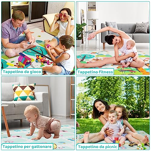 Design impermeabile e antiscivolo su entrambi i lati: questo tappetino da gioco per bambini ha un design impermeabile e antiscivolo. Il rischio di lesioni è ridotto al minimo grazie alla superficie morbida e antiscivolo del tappetino da gioco. In questo modo è possibile far gattonare, scatenare e giocare in tutta tranquillità. La superficie è facile da pulire, basta pulirla con un panno umido.