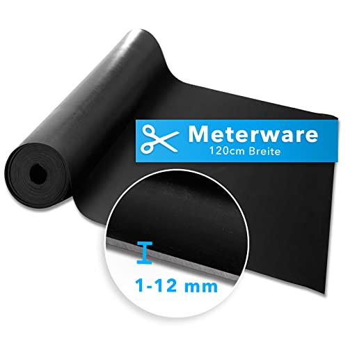 Robusta gomma industriale: i tappetini in gomma SBR sono larghi 1,20 m e sono disponibili in 9 diversi spessori, da 1 a 12 mm, con una lunghezza fino a 10 m!