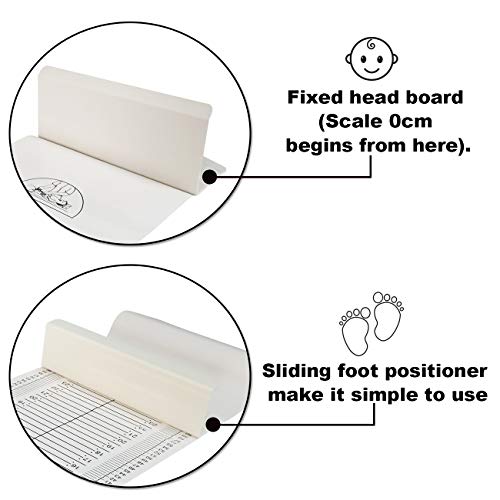 【Facile da usare】 - Le istruzioni sono stampate in forma grafica nella parte superiore di ogni tappetino. La testa fissa e il posizionatore del piede scorrevole rendono semplice la misurazione del bambino.