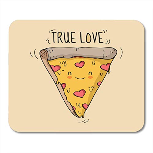 Tappetino per mouse con motivo animato sorridente a forma di triangolo con formaggio e salami a forma di cuori, per notebook, scrivania, computer, forniture per ufficio, 25 x 30 cm