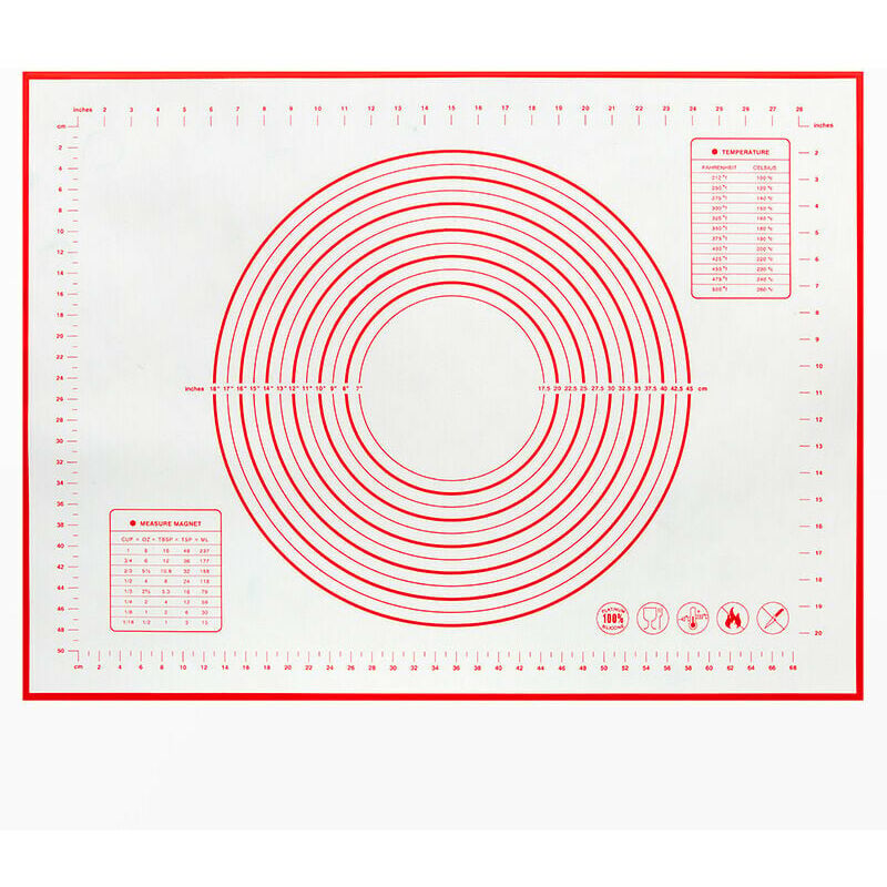 I nostri tappetini da forno sono realizzati in fibra di vetro rinforzata e silicone alimentare. Non tossico, senza BPA, mantieni la tua famiglia sana per sempre. Il tappetino da forno in silicone è approvato dalla FDA e spesso 0,4 mm. Pertanto, l'impasto non si raggrinzirà e non si muoverà durante l'impasto. Può resistere a temperature da -30°C a 230°C e non si deforma alle alte temperature. Il silicone della teglia è 60*50 cm (può essere utilizzato anche per stendere impasti, prodotti da forno, tappetini per farina, tappetino per torte, tappetino per pasta con misura), dimensione ideale 60 X50 CM antiscivolo (adatto per la produzione di cupcakes, fondenti, muffin, gelati, biscotti, pasta per pizza, pasta, pasticcini). Il tappetino da forno in silicone offre una superficie extra larga e antiscivolo per la preparazione di tutti i tipi di pasta e fondente, torta, pasta per pizza, pane, biscotti fatti in casa e pasta per biscotti. Stendere e rimanere fermo: it si attacca ai