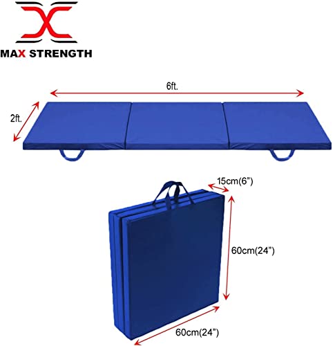 Tri Tappetino da yoga pieghevole, antiscivolo, per esercizi di ginnastica, 1,8 m di lunghezza, 0,6 m di larghezza, extra spesso, tappetino da yoga, per proteggere dai pavimenti duri (blu)