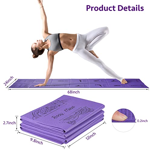 Tappetino di yoga pieghevole per le donne,Tappetino di esercizio antiscivolo per la palestra domestica,Set di yoga da viaggio con elastico per yoga pilates e fitness,68" L x 24"W x 1/5pollici di