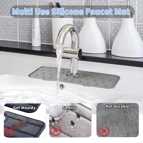 Dimensione del prodotto: Le dimensioni del tappetino dell'acqua è 37x14x0,8cm / 14,6x5,5x0,3inch, è più grand dei prodotti simili.Adatto a un diametro di 6,4 cm2,5 pollici del rubinetto singolo.Niente più noioso asciugatura del lavandino, rendi il tuo lavandino della cucina pulito!