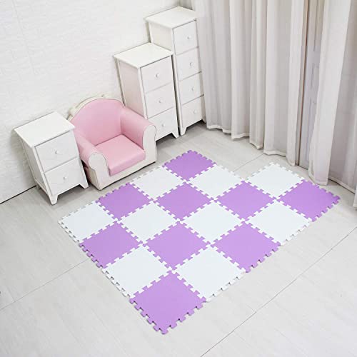 Qqpp Tappetino in schiuma EVA per bambini, ideale per i tappeti da gioco per bambini, 18 lastre (30 x 30 x 1 cm), bianco e viola. QQC-AKb18N