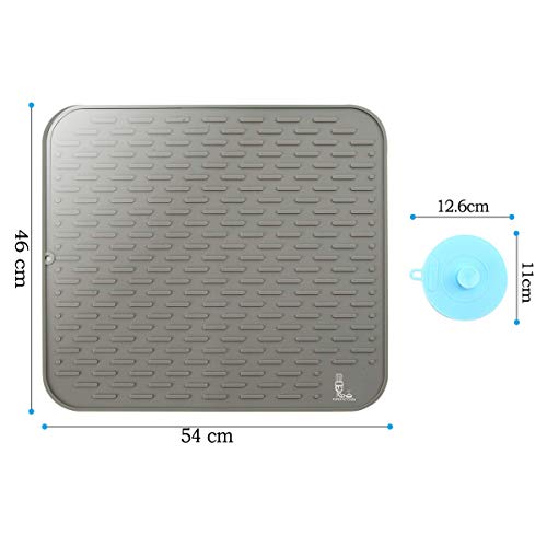 Tappetino Scolapiatti Extra Large in Silicone con Spugna Multifunzionale, Scolapiatti da Appoggio, Tappetino Lavello Cucina, Sottopentola in Silicone Resistente al calore, Tovaglietta, 54×46cm Grigio