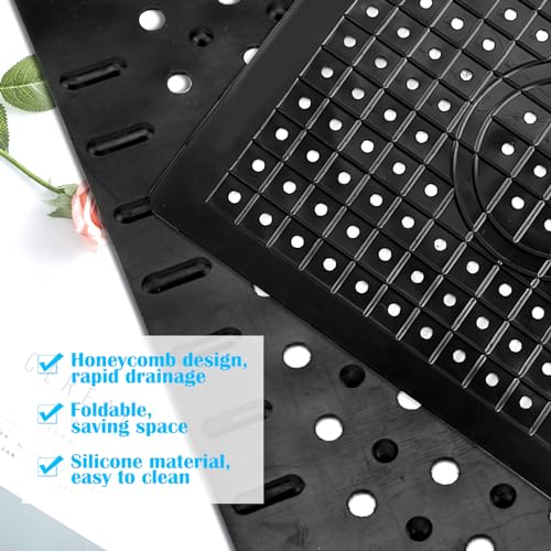 Drenaggio rapido: il tappetino per lavello è progettato a forma di nido d'ape, che può scorrere rapidamente, piedini antiscivolo e rialzati, che possono sollevare il tappetino del lavello e far passare l'acqua, allo stesso tempo fissare il tappetino per lavello. Il tappetino protettivo in gomma per lavello allo stesso tempo può bloccare residui di cibo e rifiuti per evitare l'intasamento delle fogne.