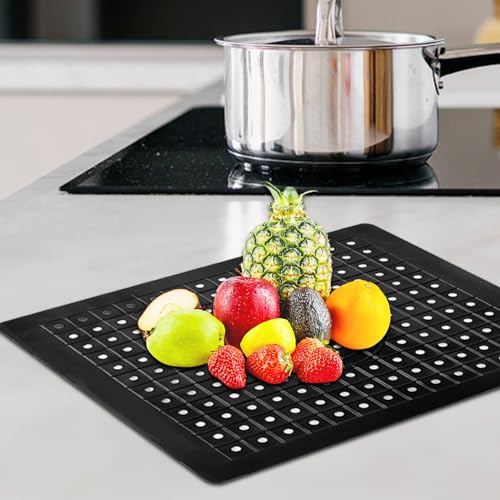 Tappetino scolapiatti, inserto rettangolare per lavello, in cristallo, resistente al calore e antiscivolo, in silicone TPR, colore nero, ritagliabile e antiscivolo