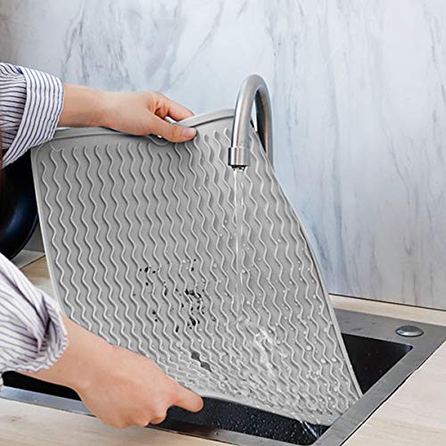 Tappetino per scolapiatti in silicone antiscivolo e isolamento termico, facile da pulire, 40 x 30 cm, colore: grigio