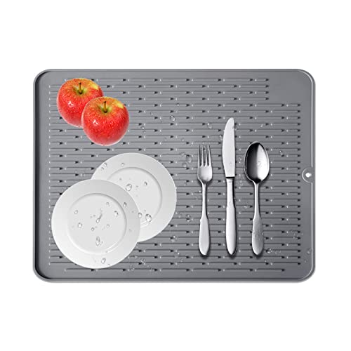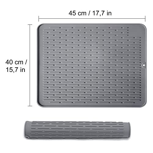 Tappetino Scolapiatti in Silicone Antiscivolo Resistente al Calore, 45 x 40 cm, per la Cucina di Posate, Grigio
