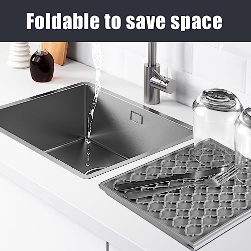 Tappetino Scolapiatti Silicone Tappetini Lavello - Pieghevole Tappeto di Drenaggio la Cucina Resistente al Calore e Antiscivolo per il Drammatico delle Stoviglie e Isolamento Termico, Grigio