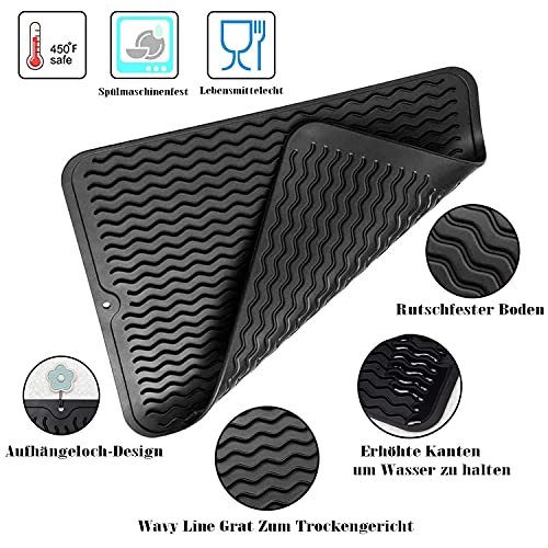 2 Tappetino Scolapiatti, Tappetini per Posate in Silicone, Tappetino per scolapiatti in silicone, Tappetino scolapiatti in silicone, Antiscivolo, Resistenti al Calore, Facili da Pulire