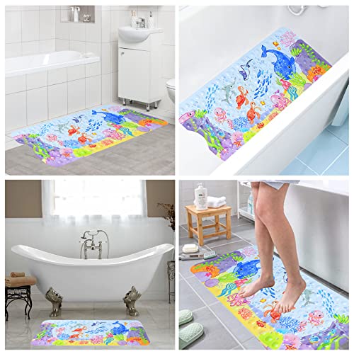 Tappetino Vasca Antiscivolo, 100x40cm Tappetino per Doccia Antiscivolo con 200 Ventose e Modello Animale Marino Antibatterico e Lavabile in Lavatrice Tappetino da Bagno