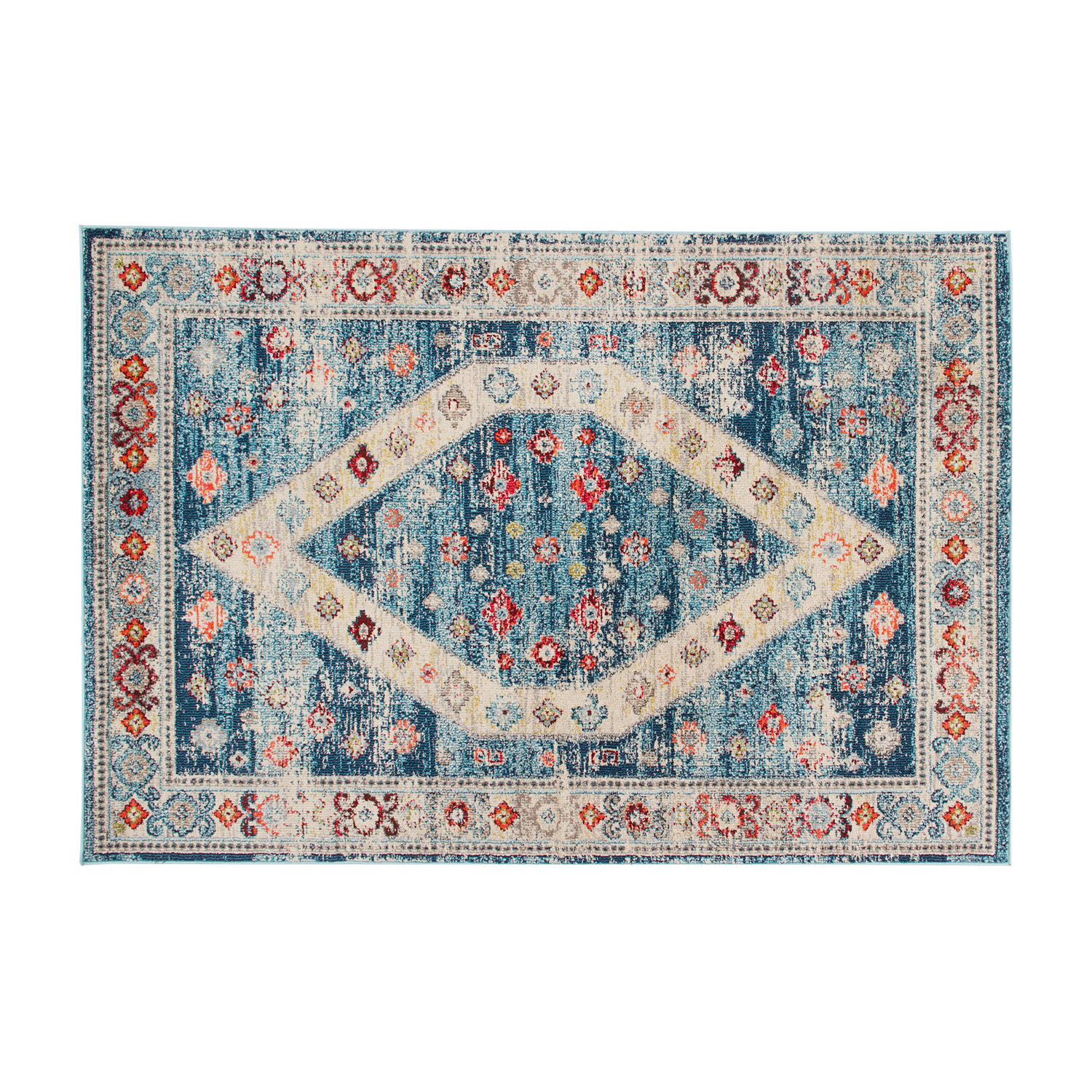 Casablanca è la linea di tappeti dal gusto vintage estremamente vitale: un tripudio di colori sgargianti dalle mille sfaccettature e combinazioni, sviluppati secondo un design classico rivisitato con alta creatività. Morbido al tatto grazie alla lavorazione frisee del filato e di facile manutenzione, questo complemento d'arredo infonde nell'ambiente stile e carattere, garantendo anche praticità d'uso. Dimensioni: 133x190 cm.