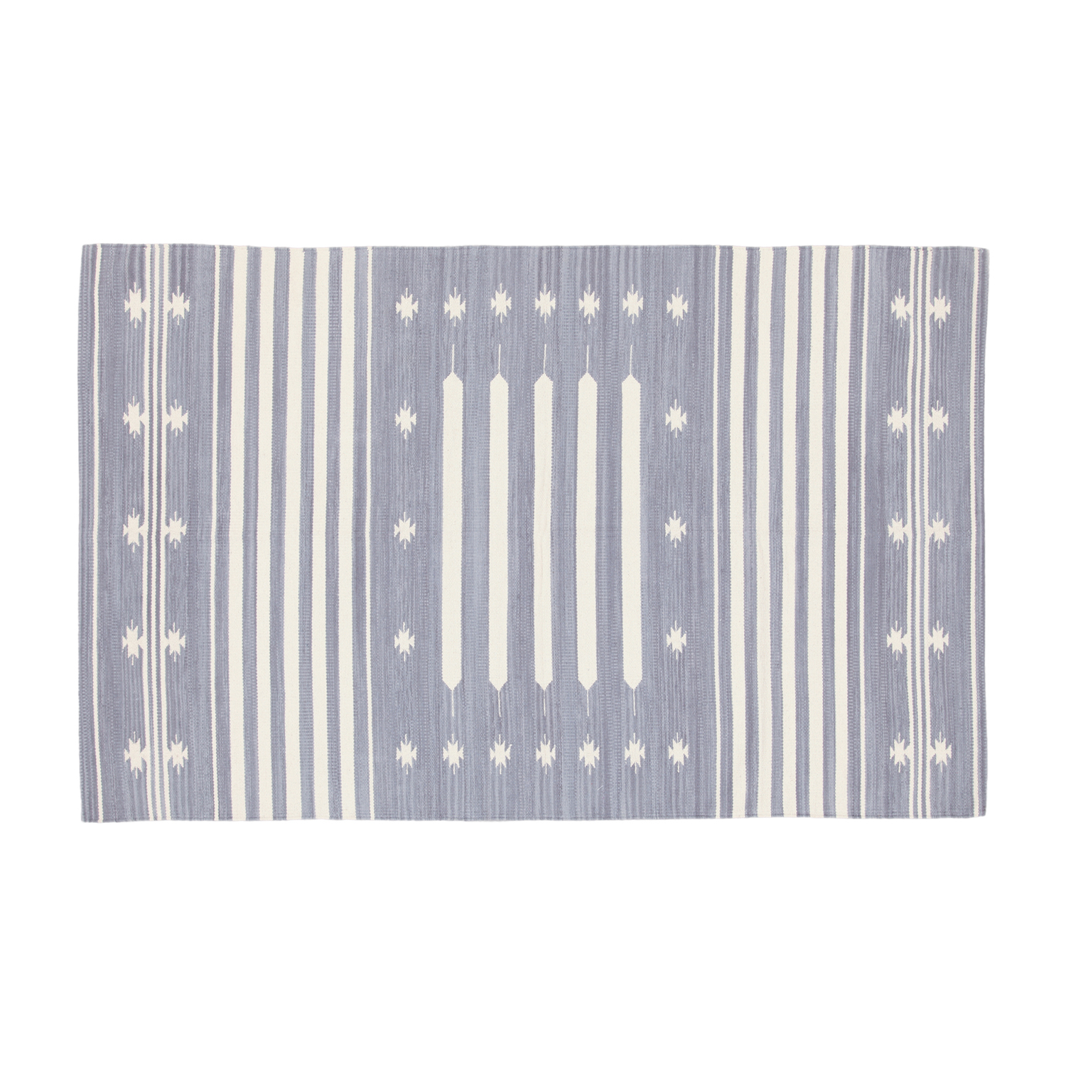 Patio è la nuova linea di tappeti in cotone tessuti con telaio manuale utilizzando solo filati di alta qualità. Le colorazioni avvengono con metodologie naturali donando al manufatto un gusto etnico modernizzato dall'uso di tinte di tendenza. Tappeto double face. Misure: 200x140 cm.