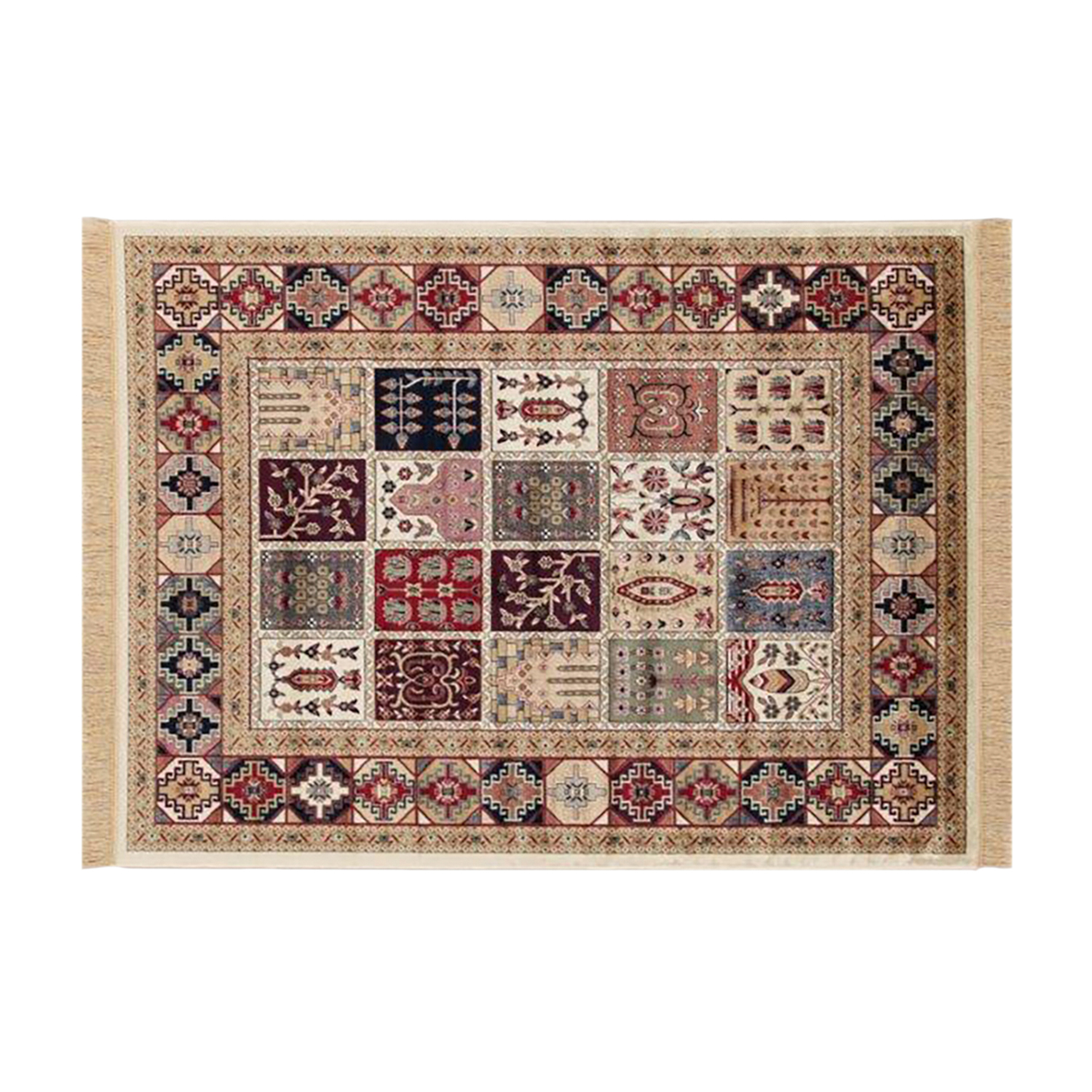Farshian è una famiglia di tappeti in stile classico con morbide frange alle estremità e colori brillanti. Sono realizzati in viscosa, materiale lucente e setoso che conferisce un look elegante e delicato e che richiede una maggior attenzione nella cura e pulizia. Lo spessore minimo del vello li rende adatti per case con riscaldamento a pavimento e per arredare zone di scorrimento delle porte. Misure: 230x160 cm.