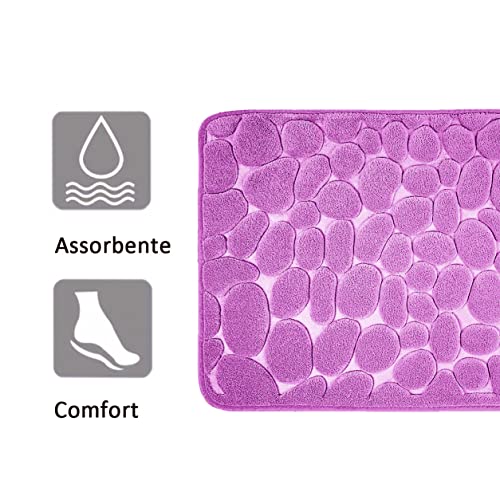 BM 4151 Tappeto Antiscivolo Assorbente in Memory Foam 45x75 cm Viola Effetto Pietra Sassolini Tappetino Lavabile Morbido Assorbente da Terra per Vasca, Doccia e Bagno
