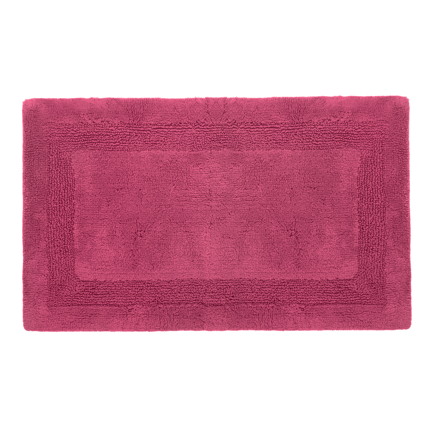 Questo tappeto è l'ideale per il tuo bagno. In puro cotone di colore magenta, presenta una superficie tanto semplice quanto variegata grazie alle cuciture e alle fantasie del tessuto. È, inoltre, super assorbente e morbidissimo al tatto. Dimensioni: 50x80 cm.