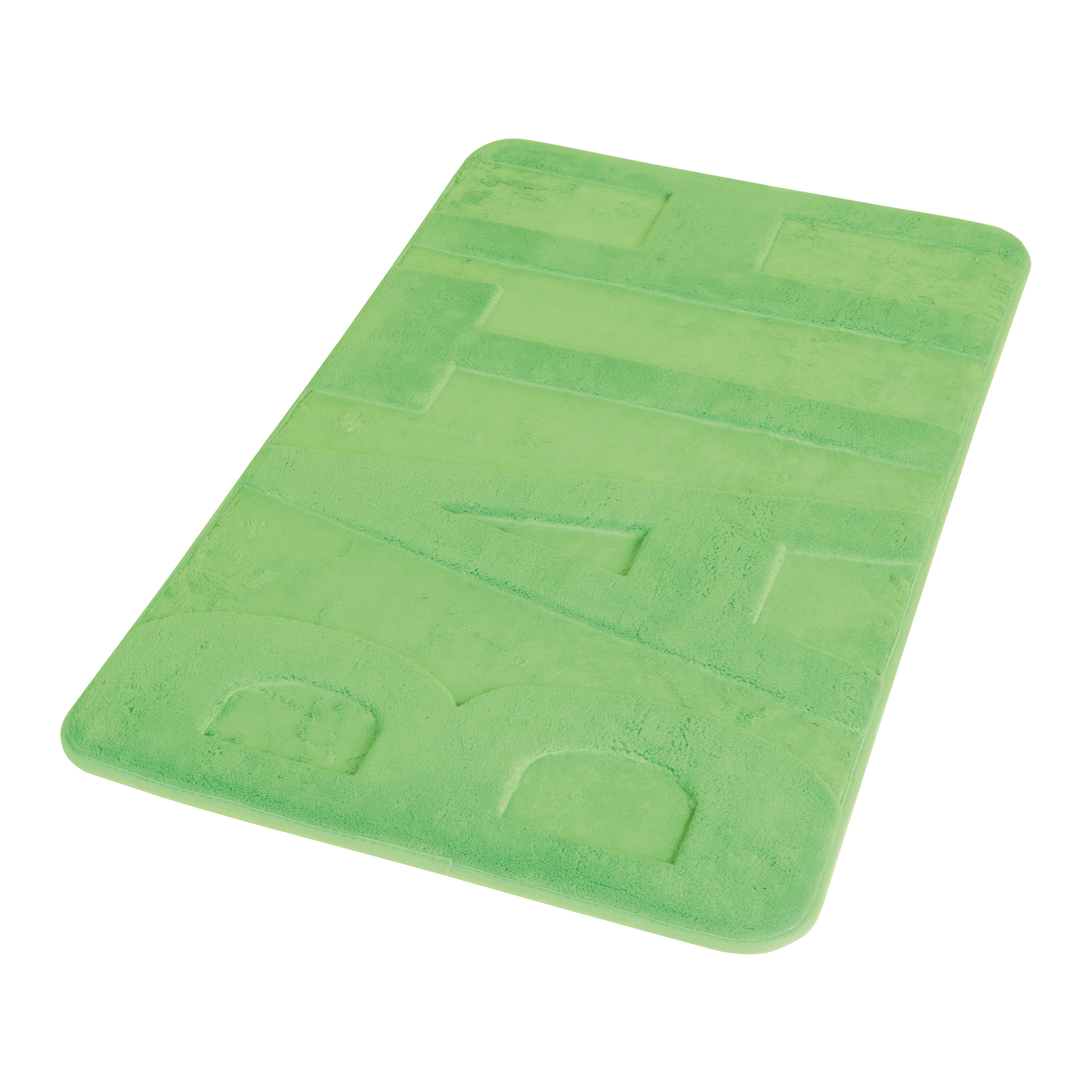 Tappeto bagno memory, 45 x 75 cm, superficie 100% poliestere, aspetto soffice e mordido al tatto, interno memory foam per un maggiore comfort, fondo in pvc antiscivolo, decoro scrittta BATH, colore verde