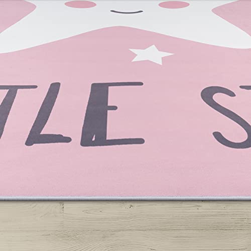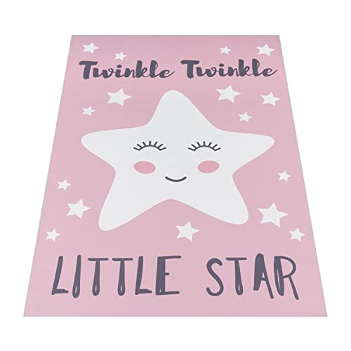 Paco Home Tappeto per i Bambini, Tappeto per la Camera dei Bambini con Stelle, Luna e Motivi a Quadri, Dimensione:160x230 cm, Colore:Pink 3
