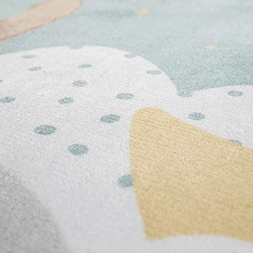 TT Home Tappeto Bambini Chicco Tappeto Stanza Bambini con Stelle Nuvola Cielo Lepre Luna, Colore:Turchese Bianco Giallo, Dimensione:120 cm Rund