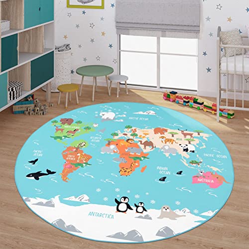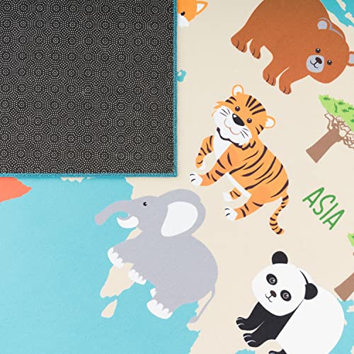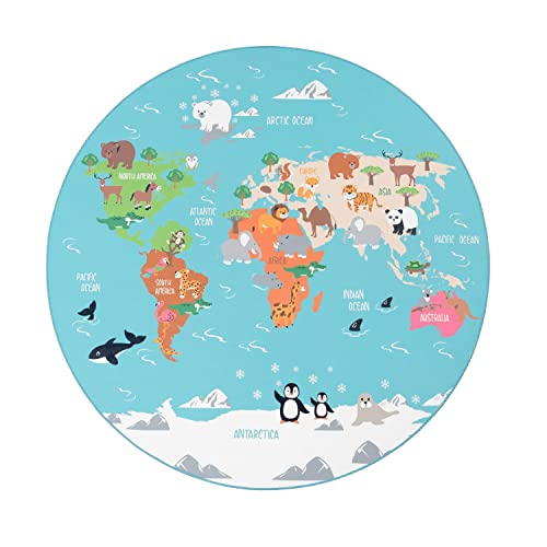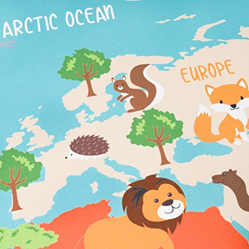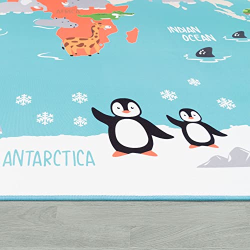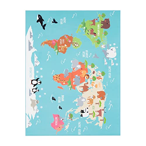 TT Home Tappeto per bambini, Tappeto da gioco per le camere dei bambini, Mappa del mondo con animali, In verde, Dimensione:160x220 cm