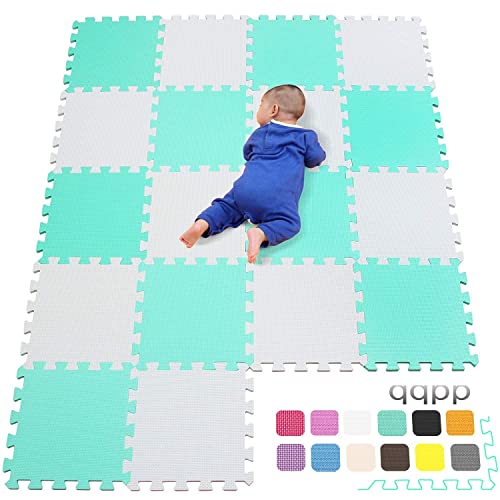 Qqpp Tappeto Bambini Puzzle con Certificato CE in Morbido Gomma Eva | Tappeti da Gioco per Bambina | Tatami. 18 Pezzi (30 * 30 * 1cm), Bianco & Verde. QQC-AHb18N