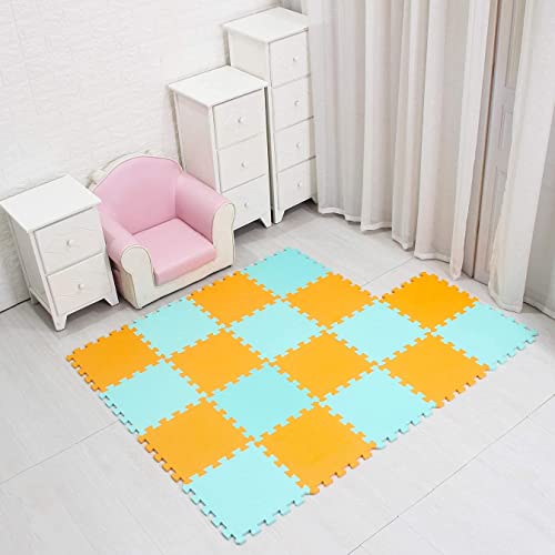 Qqpp Tappeto Bambini Puzzle con Certificato CE in Morbido Gomma Eva | Tappeti da Gioco per Bambina | Tatami. 18 Pezzi (30 * 30 * 1cm), Arancione & Verde. QQC-BHb18N
