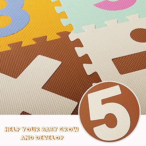 Tappeto Bambini Puzzle Gioco: Tappetino per Morbido Schiuma Gomma Eva Neonato cameretta Esterno Fuori 16 Pezzi Numeri Pavimento quadrotti Terra componibile 1,4 x 1,4m