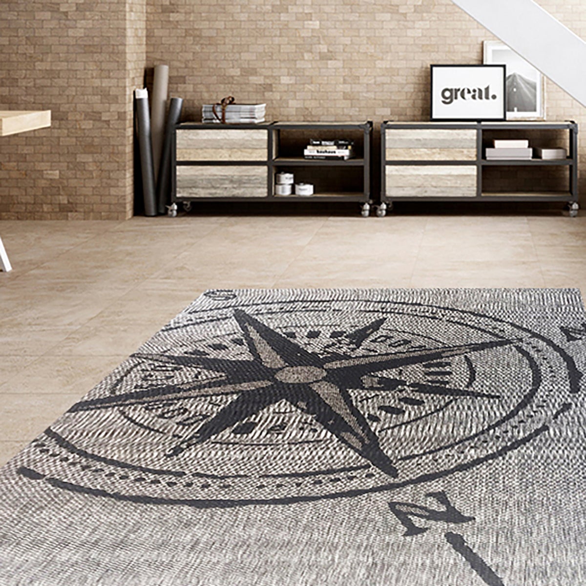 Per degli ambienti raffinati, il caldo tappeto a pelo corto Bussola da 230x160 cm è una soluzione ideale. È perfetto per qualsiasi stile di arredi ed è adatto nella zona giorno per un divano a 3 posti. Dona uno stile unico alla casa con questo motivo originale.. Questo tappeto è realizzato interamente in polipropilene. Il polipropilene è facile da pulire e molto resistente allo sporco, quindi perfetto per un tappeto. Il vantaggio di questo modello è il fatto che possa essere utilizzato su tutti i tipi di pavimento, compresi quelli con riscaldamento a pavimento.. Per rendere il tappeto più stabile, si raccomanda di utilizzare una protezione antiscivolo. Per prendersi cura del tappeto regolarmente, basta pulirlo con un aspirapolvere senza spazzole, mentre la maniera migliore per rimuovere efficacemente lo sporco in profondità è quello di lavare il tappeto a secco.