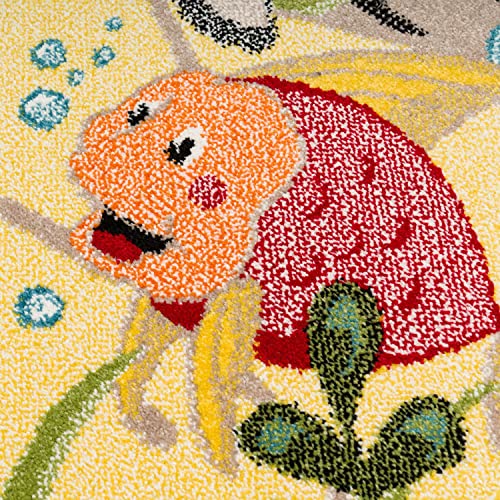 Tappeto per cameretta bambini mondo subacqueo a pelo corto in turchese grigio verde rosa blu, 120 x 170 cm